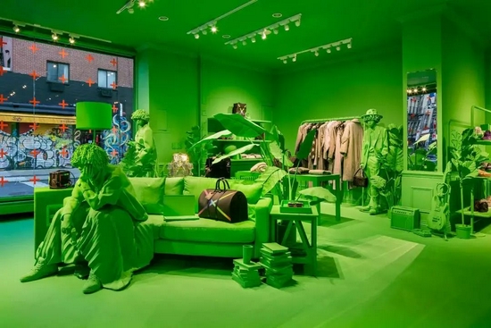 Louis Vuitton更是把男装店铺也装点成绿色。