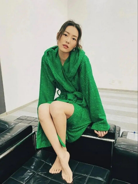例如这件绿色浴袍,在明星们的演绎下看起来高级感十足。融合了毛绒感和肌理感的绿色,一下变得高大上起来。