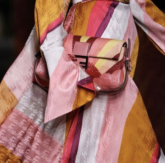 以整部现象级的成功电视剧为加持,Fendi Baguette迅速跻身It Bag的高顺位,往后至今,Baguette自身就是一场庞大的时装秀,在保留经典造型的前提下,Baguette在面料、颜色、装饰物上不停变化,从皮质、皮草,再到刺绣、珍珠、闪片,它几乎就代表着Fendi本身。