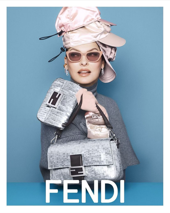 近日,Fendi也发布了由90年代超模Linda Evangelista出镜的广告大片,并宣布在9月举办纽约时装秀以庆贺Baguette手袋诞生25周年,可以看做品牌又一次有力的市场营销。