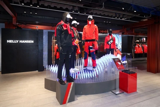 位于店铺一楼中央推出的 Ægir inspired H2Flex 海神系列针梭织夹克。Ægir 系列原为专业大洋赛而设计的航海服,其运用了 HELLY TECH® 专业技术和远洋级的 4 层结构,具备良好的防水性和透气性,允许汗液轻松蒸发的同时防止外部液态水的进入,保持体感时刻干爽。而此次全新上市的 Ægir inspired H2Flex 产品系列,灵感源于 Ægir 海神系列专业装备,夹克衣身前片采用 3 层防水面料和 H2Flex 针织面料的拼接设计,使其整体呈现更具层次感和时尚感,也大大提高了运动时的穿着体验感,后颈部经典 HH 航海元素织带和隐藏式风帽的设计,保留了 Ægir 经典系列航海元素,彰显品质;除夹克外也同时上市了卫衣、T恤、秋装及配饰包包等等,其中 T 恤和卫衣都具备防晒功能 UPF50+,可有效阻挡紫外线的伤害。此次 Helly Hansen 共推出 100 个全国限量 Ægir 海神系列礼盒并为消费者提供定制服务。