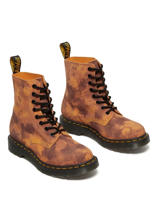 除了不出错的黑色系,马丁还为各位时髦精们带来经典的 Crazy Horse 系列与全新的 Grunge Tie Dye 系列,为早秋日常穿搭增添色彩。本季疯马皮系列采用 3.5CM 的 Bex 底面,同样拥有 1460、1461 及 2976 三个经典廓形选择。低调增高,在视觉上修饰腿部线条,提升身材比例。沉稳的深棕色疯马皮搭配复古金色鞋孔,质朴却有态度,个性却不张扬,与品牌经典的黄色边缝线更是相得益彰。无论如何搭配都能散发独一无二的魅力,让人眼前一亮。