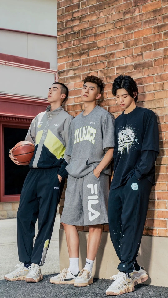 国家级篮球运动健将、知名街球手张照洋(中) 演绎 FILA FUSION 全新潮流运动系列服饰