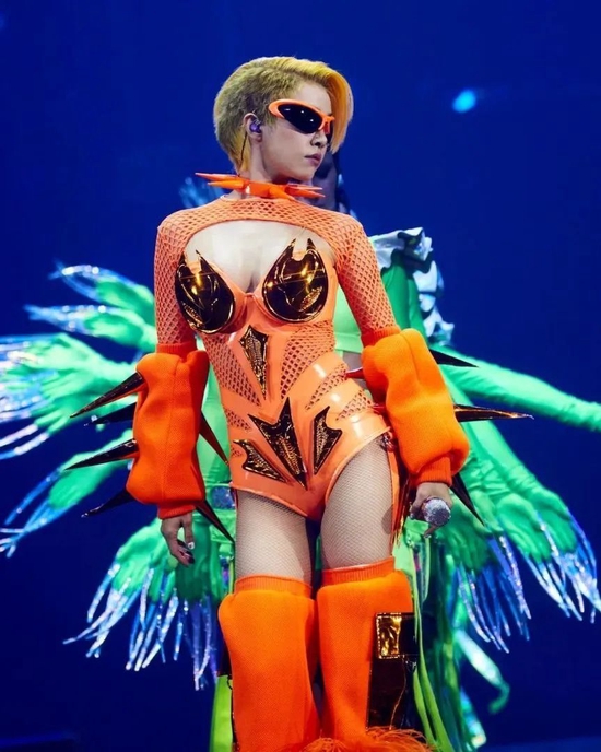 浮夸且具备赛博元素的设计与蔡依林本人强大的气场完美契合,两方的多次合作不仅让粉丝看见了蔡依林多元化时尚的呈现能力,也让大家感受到 WINDOWSEN 主理人李森森本人在梦幻套装和浮夸设计自由切换的设计功力。